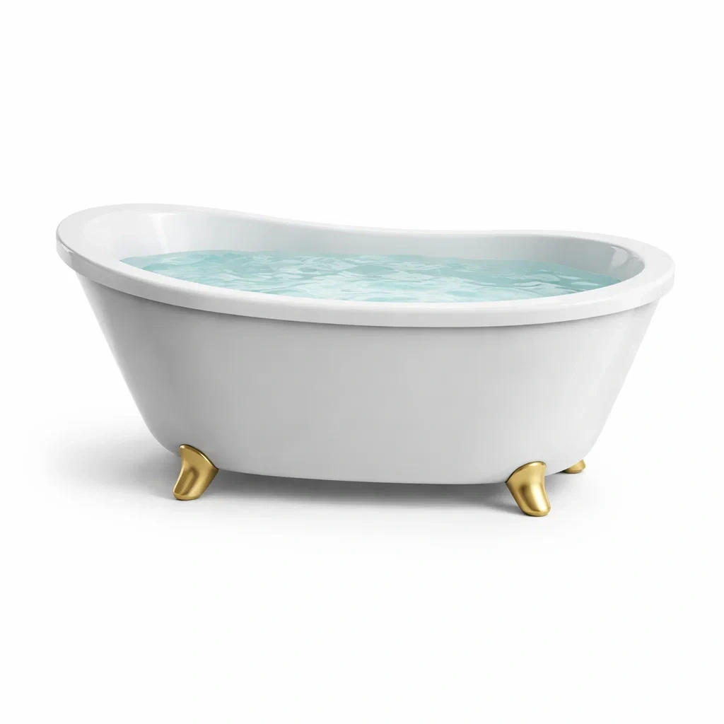 Baignoire îlot en acrylique blanc avec pieds dorés