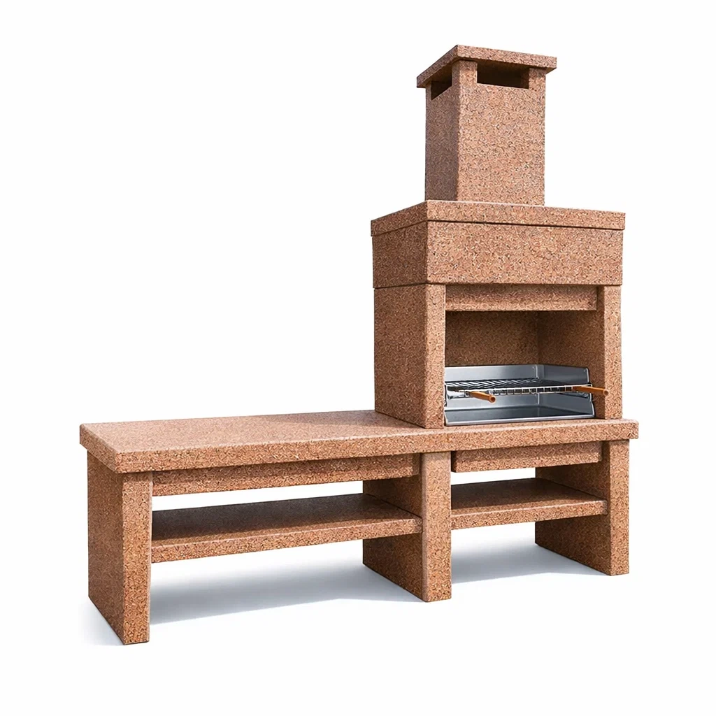 Barbecue en béton avec grille en acier inoxydable. Dimensions: Hauteur 200 cm x Largeur 180 cm x Profondeur 70 cm. Poids: 350 kg. Fonctionne au charbon de bois. Comprend une grille en inox ajustable pour la cuisson extérieure.