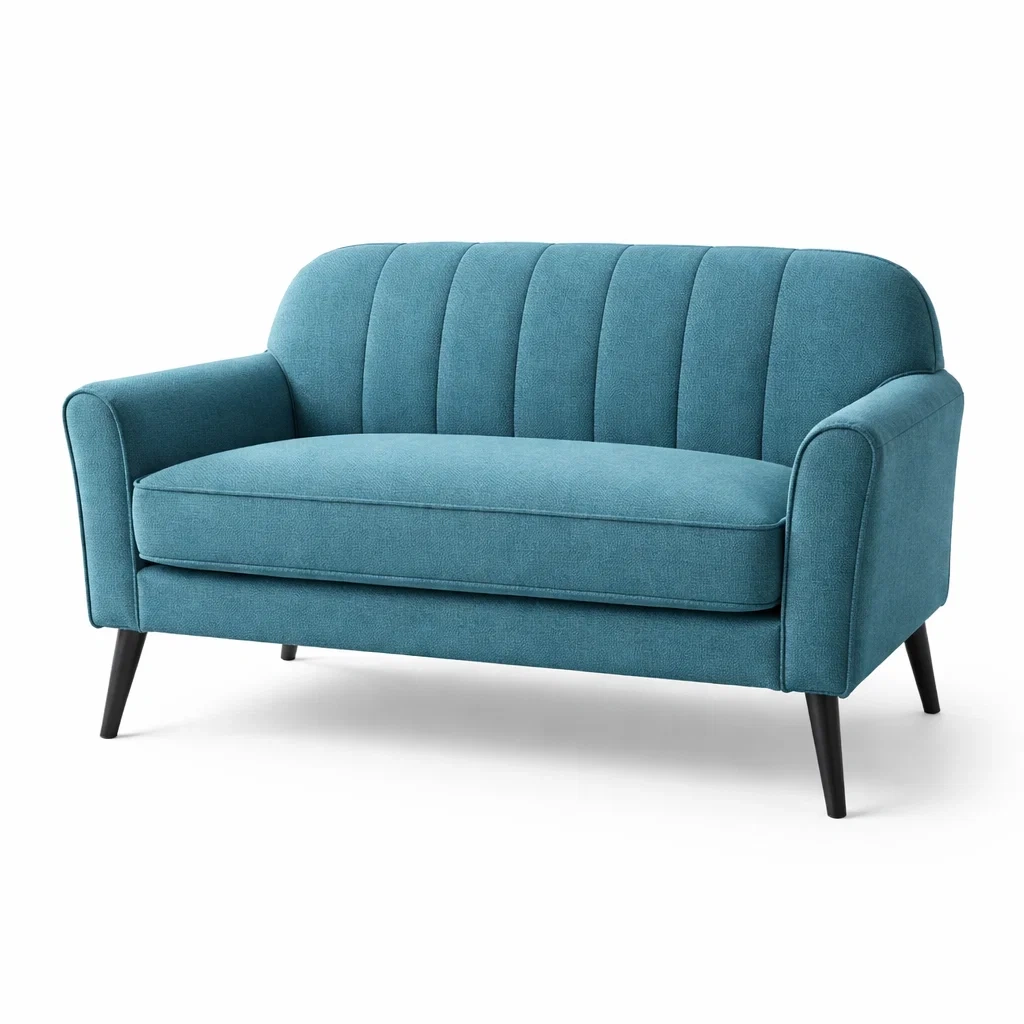 Le canapé présente une structure en bois robuste avec un revêtement en tissu polyester résistant. Les pieds en bois ajoutent de la stabilité. Le revêtement de l'assise et du dossier est en mousse de haute densité pour un soutien optimal.