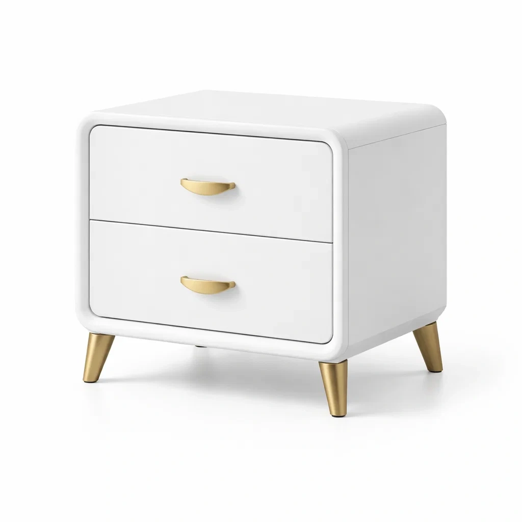 Table de chevet en bois MDF avec tiroirs en métal doré